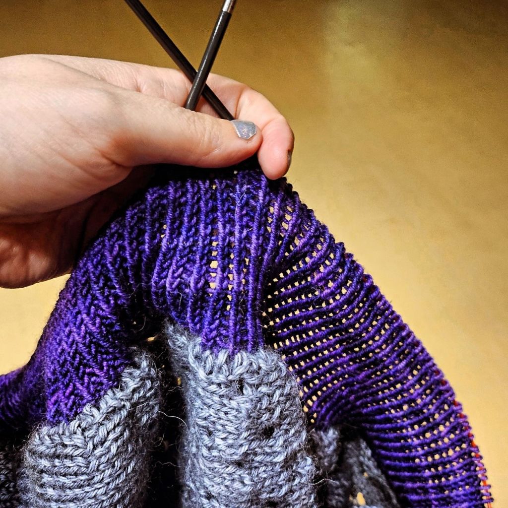 Currently working on two projects: my Campside Cardi and my Fox and the Grapes… from 2017.