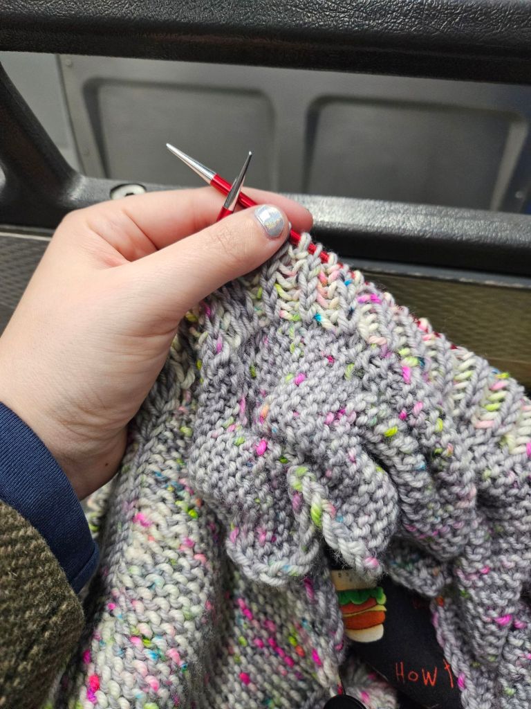 I finished the front and back cable strips and have started on the main body of the poncho – all of the brioche! I think this will be a fun commute knit as the brioche portion is pretty easy going.